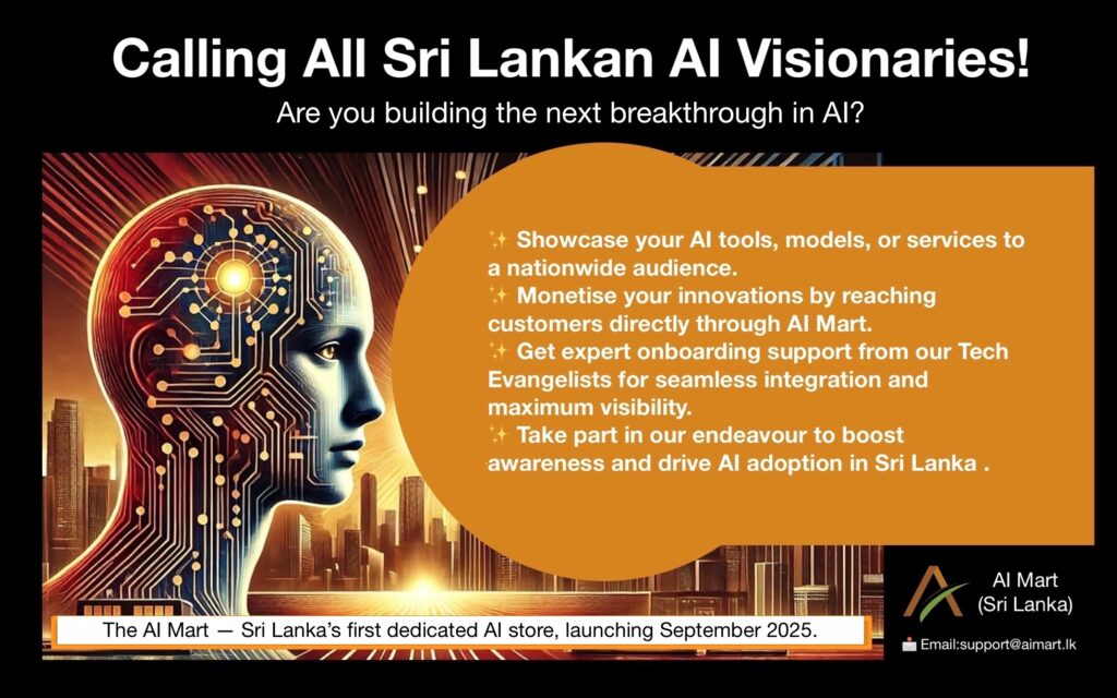 Are you building the next breakthrough in AIIntroducing The AI Mart — Sri Lanka’s first dedicated AI store, launching September 2025. ✨ Showcase your AI tools, models, or services to a nationwide audience.✨ Monetize your innovations by reaching customers directly through AI Mart.✨ Get expert onboarding support from our Tech Evangelists for seamless integration and maximum visibility with AI Mart.✨ Take part in workshops, live demos,… Read more: Calling All Sri Lankan AI Visionaries!
