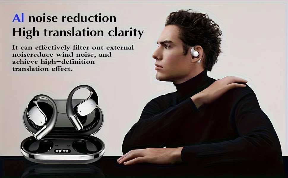 AI Language Translation Wireless Earbuds Q39, 3-in-1 Translator Earbuds Real Time Ai Headphones 144-Languages Translation