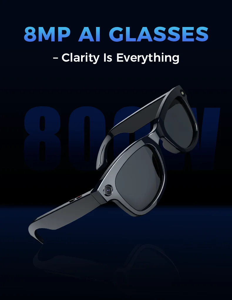 New AI Smart Professional-Grade Camera Glasses AI Voice 8MP HD Video Surround-Sound Music Bluetooth Call Wifi Smart Glasses