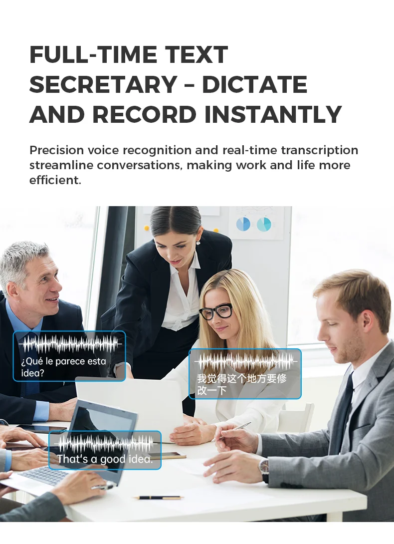 Precision voice recognition and real-time transcription streamline conversations, making work and life more efficient.