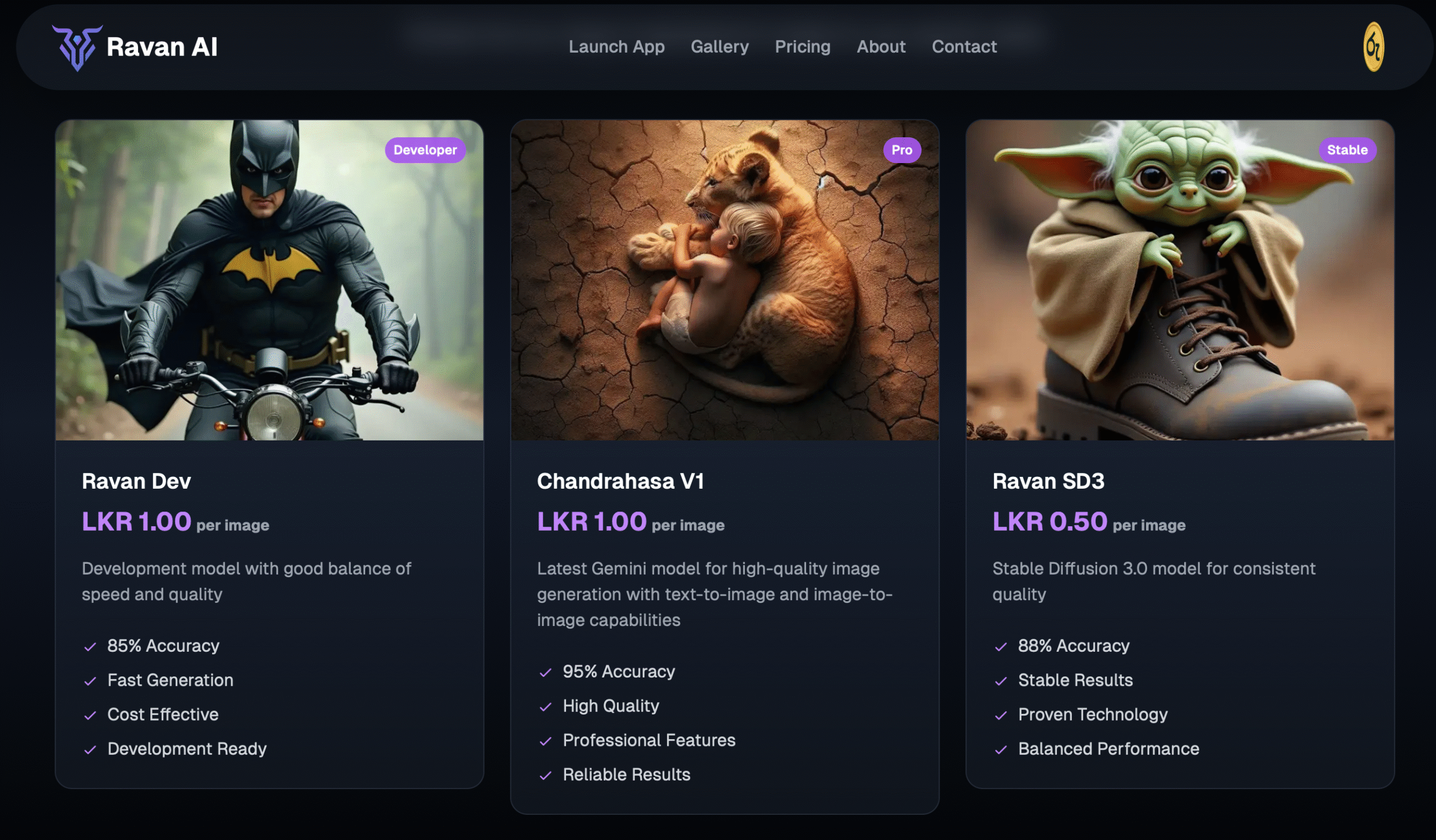 Ravan AI is a Sri Lankan image-generation platform powered by AI, specialized in creating both text-to-image and image-to-image artworks, with models tailored for cultural, artistic, and design uses.
